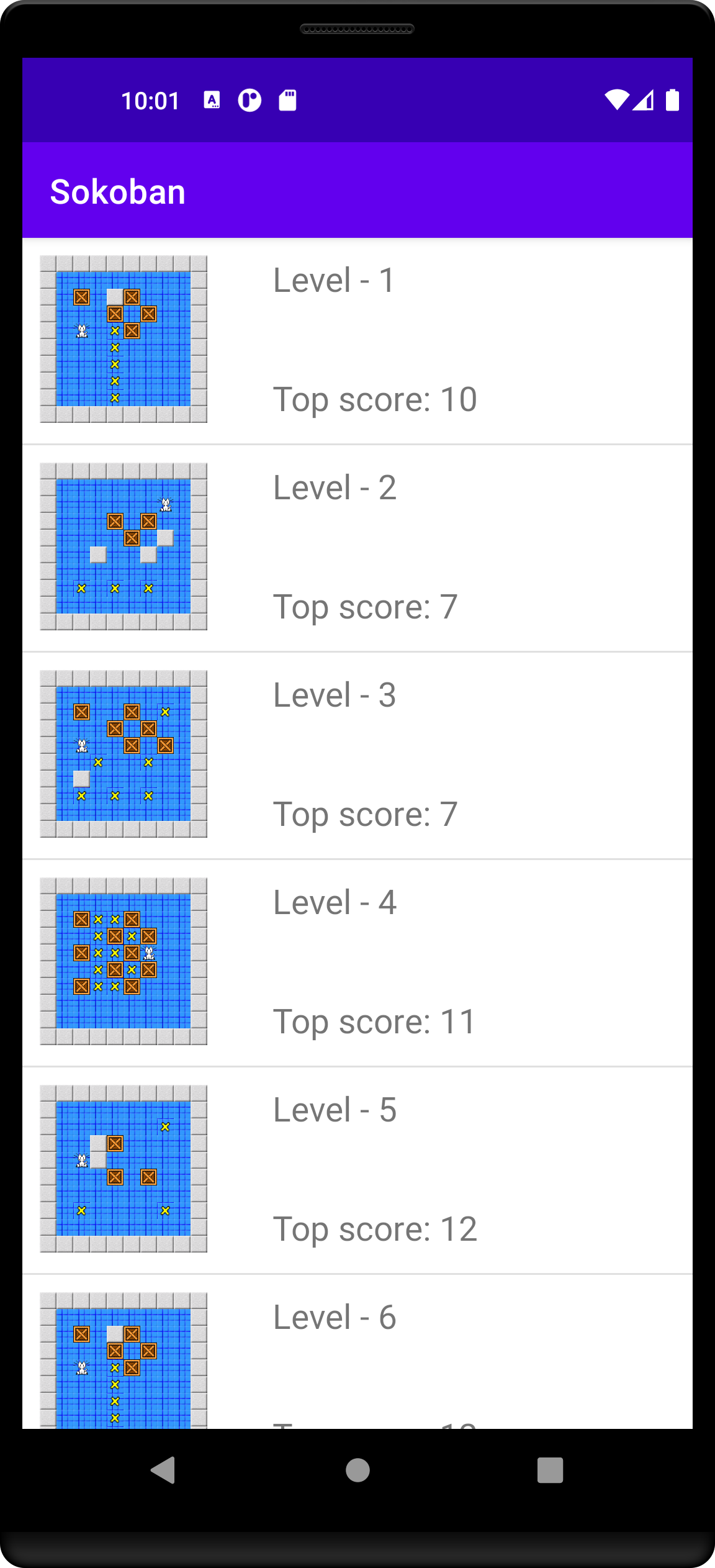- Načítání herních levelů ze souborů. Umístění souborů je na vás - můžete použít např. assets složku. Odkaz na levely: Sokoban Levels (vysvětlení symbolů) Java/Kotlin + XML ukázka assets složky: .png .txt Compose ukázka assets složky: .png .txt